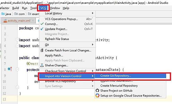 接著把Android Studio專案綁到git: